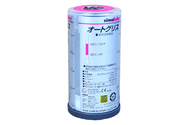 長期に渡って連続給油を行える自動給油器。通常シーズン前に給油を行い稼働期間中に給油が出来ないために摩耗や音の発生が起こってしまう事があります。オートグリスを取り付ければこのようなトラブルは大幅に低減できます。